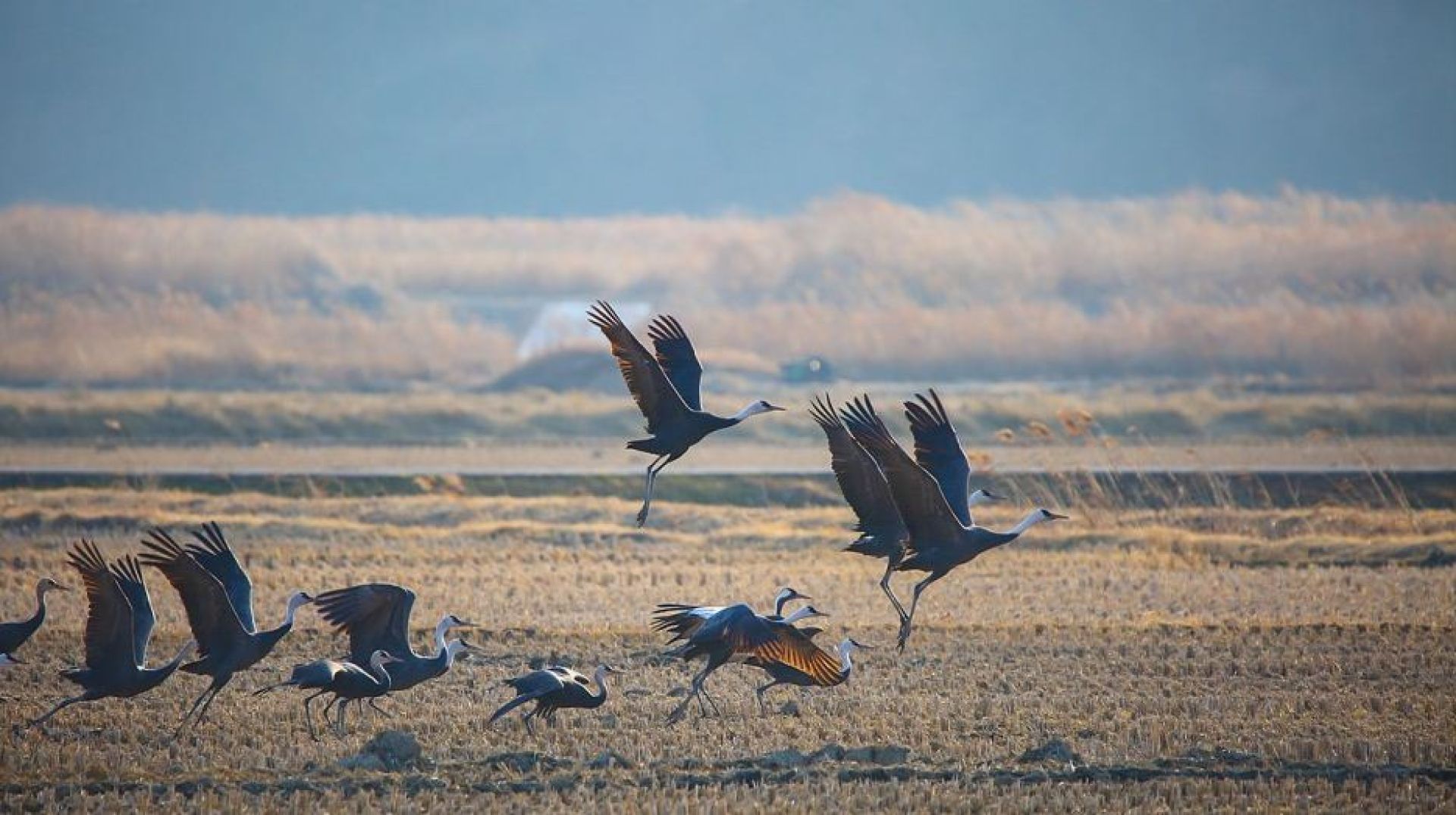저희 펜션 바로 앞마당에 찾아온 흑두루미 사진입니다.